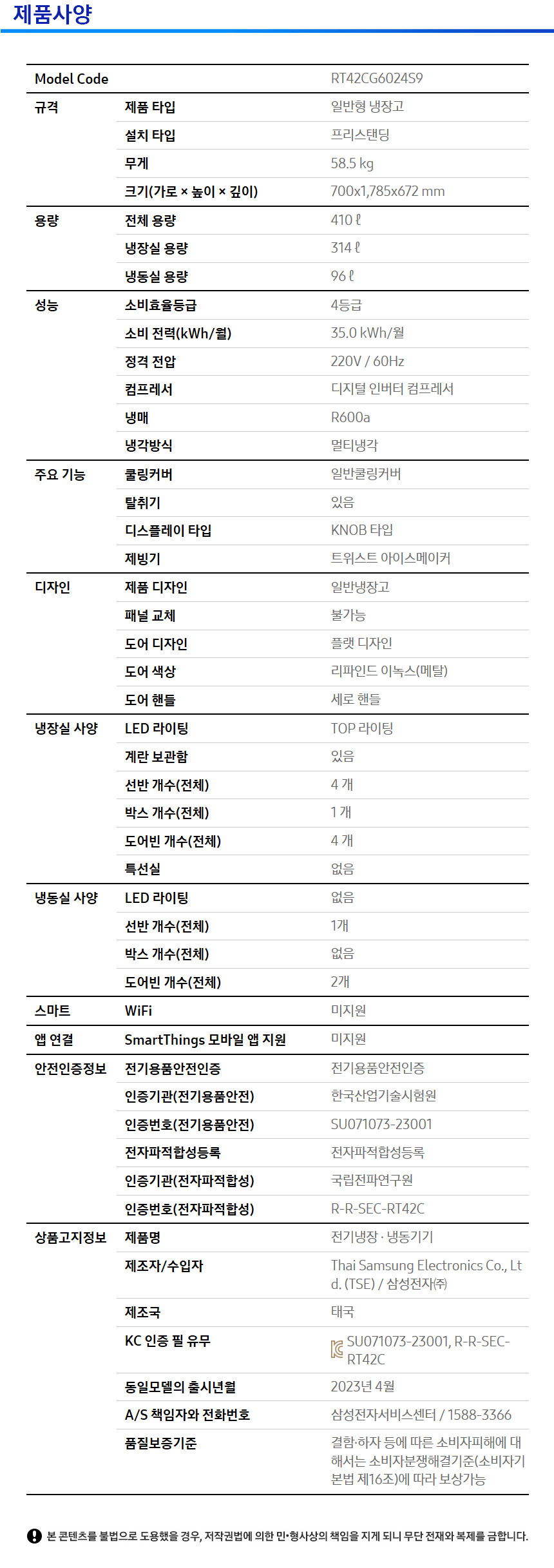 일반형 냉장고 RT42CG6024S9