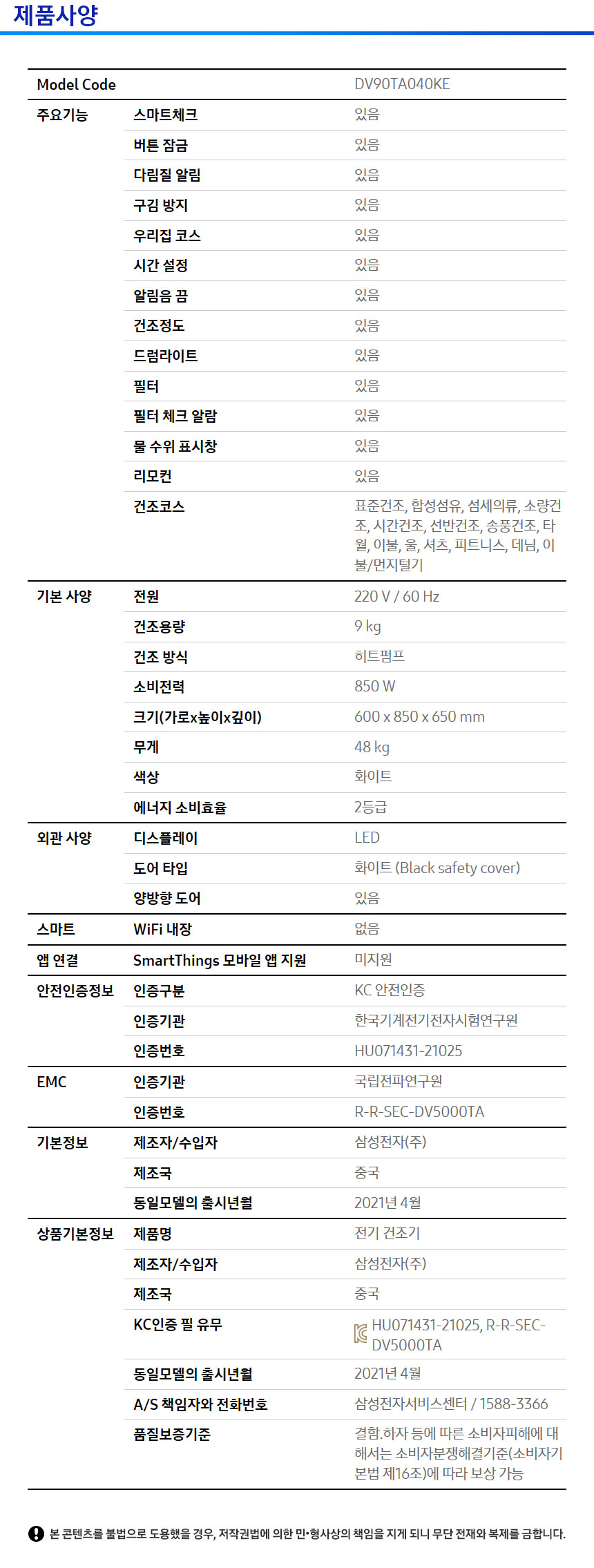 220V/60Hz, 냉수세탁시: 120W, 가열세탁시: 1800W