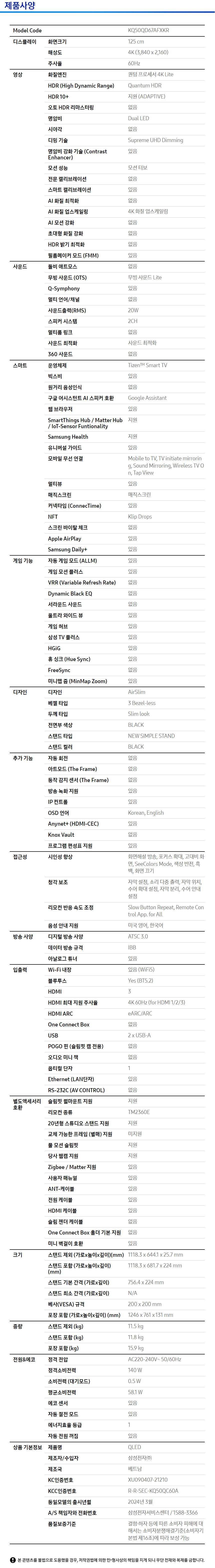 삼성TV / KQ50QD67AFXKR
