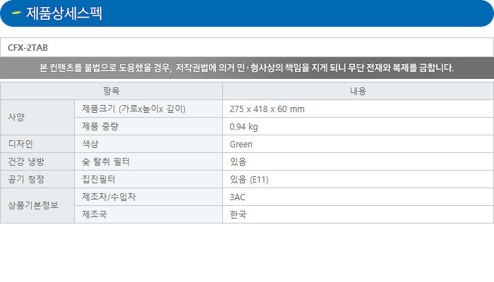 제품 크기(가로 × 높이 × 깊이) 275 × 418 × 60 mm