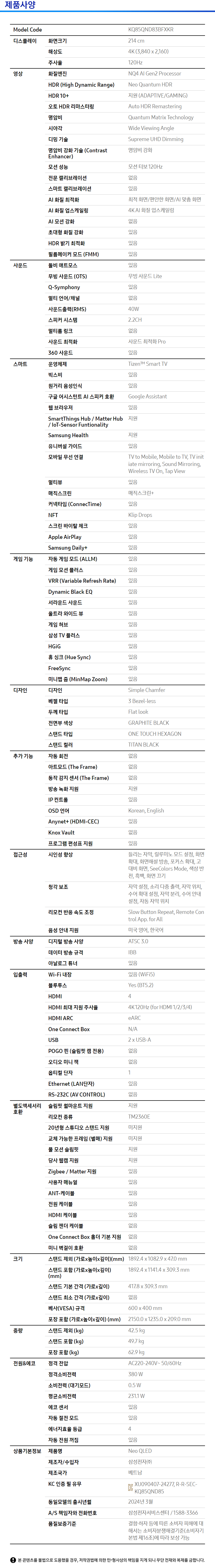 삼성 TV / KQ85QND83BFXKR