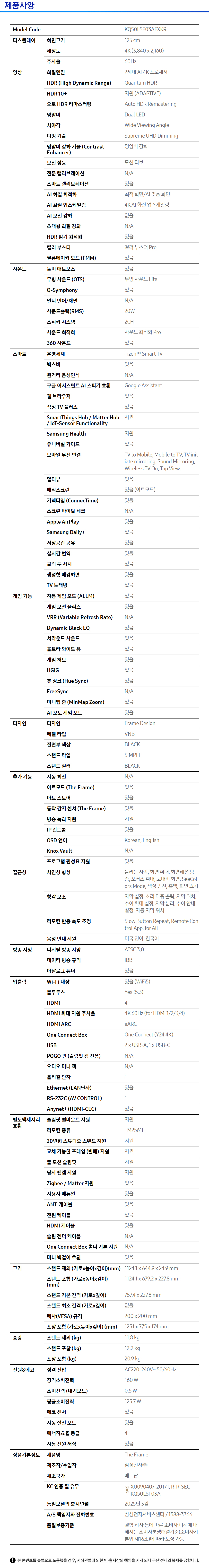 삼성 TV / KQ50LSF03AFXKR