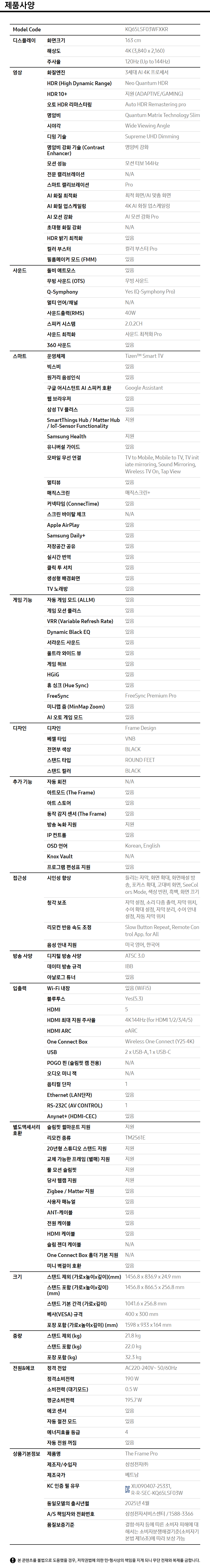 화면크기 163 cm 해상도 4K (3,840 x 2,160) 주사율 120Hz (Up to 144Hz)